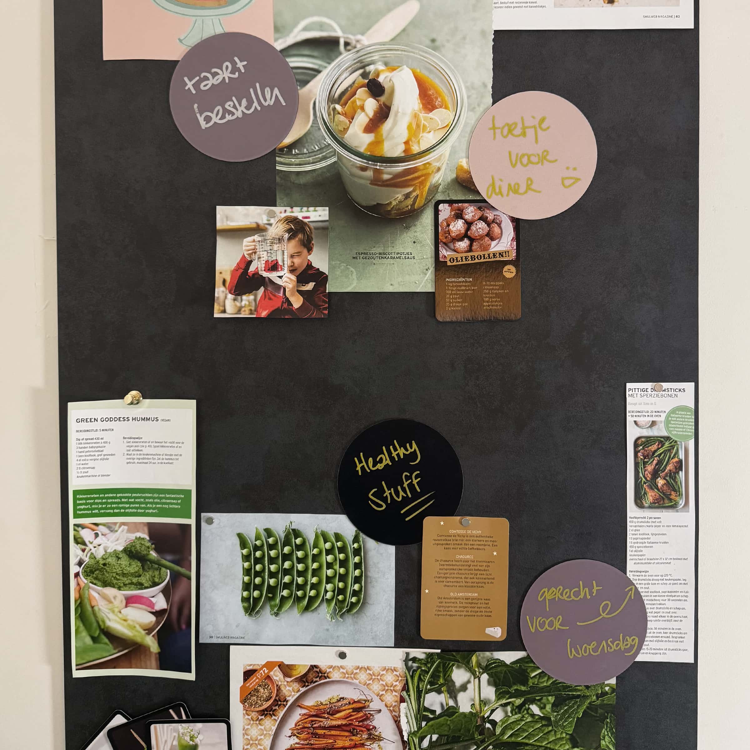 De beschrijfbare magneetlabels hebben we aangeschaft om op onze design magneetwand to do’s kwijt te kunnen. Alle familieleden maken gebruik van dit magneetbord; Er hangen tekeningen, reminders, quotes etc. Het is een super leuk interactief familiebord geworden!