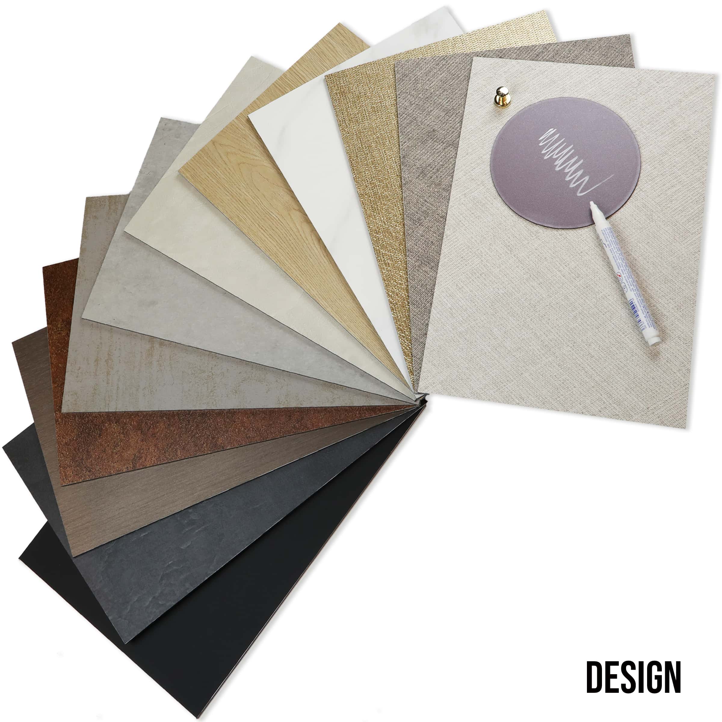 Onder design samples vallen alle niet beschrijfbare luxe designs met elk een eigen kleur, textuur en uitstraling. Designs geven een decoratieve en luxe uitstraling aan je magneetbord of magneetwand.